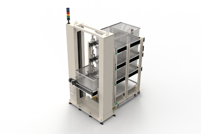 Verketten Sie Ihre Prozesse und nutzen Sie das Magazin auch zum Übergeben der gefüllten Behälter. Neben der Übergabe des gesamten Ladungsträgers mit Inhalt z.B. in eine Reinigungsanlage, kann auch der Behälterinhalt ausgeschüttet werden. Übliche Anwendungsbeispiele sind das Kippen in eine Endverpackung, eine automatisierte Montage- oder Prüflinie. Das Magazin wird mit dem Kipplift verbunden und ein Behälter ausgekippt. Der leere Behälter wird zurück in das Magazin gegeben und anschließend der nächste Behälter gekippt. Durch unser Magazin-Lösung können Ihre Fertigungsprozesse miteinander verbunden werden.