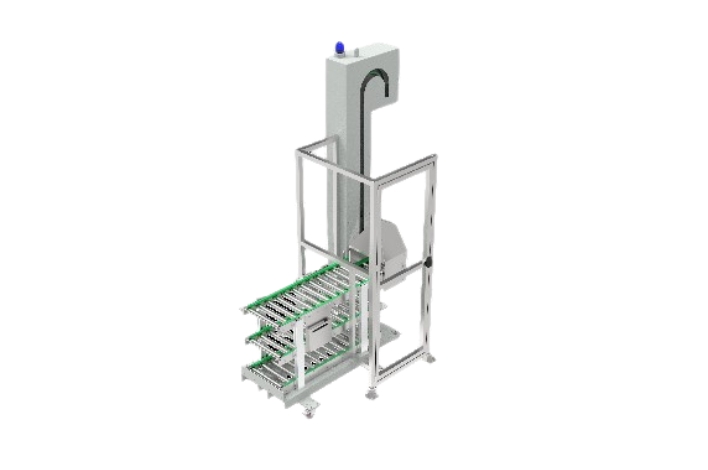 Die Magazinwagen können in Kombination mit unseren Hublift für die Befüllung Ihrer Ladungsträger verwendet werden. Das Magazin, mit leeren Behältern, wird angedockt und ein Behälter zur Befüllung übergeben. Der Behälter kann dabei über Stückzahl, Gewicht, Zeit oder Füllgrad befüllt werden. Ist der Behälter voll wird dieser wieder ins Magazin eingelagert und der nächste Behälter zur Befüllung übergeben. Ist eine kurze Wechselzeit erforderlich können wir dies über eine Doppelaufnahme am Lift und einer separaten Befüllstation lösen. Hier wird der nächste leere Behälter bereits vorgeladen, damit der Wechsel in kürzester Zeit erfolgen kann. Auf dem Bild ist eine Doppel-Lift-Station zu sehen, mit Platz für 2 Magazine.