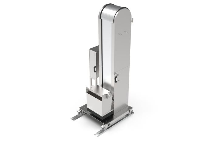 Der Einsäulenhubschwenklift ist für kleine Ladungsträger und niedrige Gewichte ausgelegt. Dieser kann an Ihrer Anlage angedockt werden, um Höhendifferenzen von der Aufgabe der Ladungsträger oder Ware und der gewünschten Füllhöhe zu überbrücken.