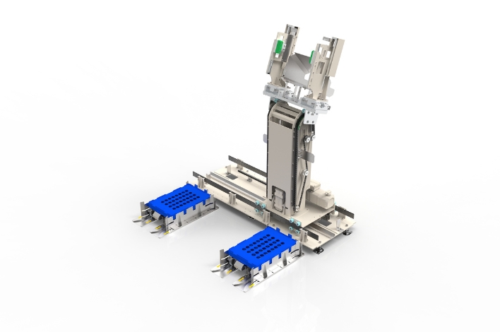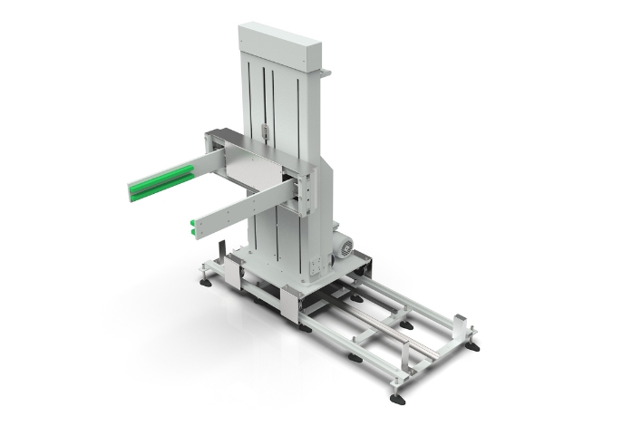 Unser Umsetzer ist in einem Kundenprojekt entstanden. Er stapelt und entstapelt Behälter in einem automatischen Regalsystem, um die höchstmögliche Lagerdichte zu erzielen. Inzwischen haben sich weitere Anwendungsfälle für den Umsetzer ergeben. Sie möchten Behälter von einem Rollwagen/Bodenroller auf eine Fördertechnik bringen oder umgekehrt? Diese Aufgabe bewältigt unser Umsetzer problemlos. Auch die Andienung des Behälterstapels für den Transport mit FTS/AGV ist möglich.